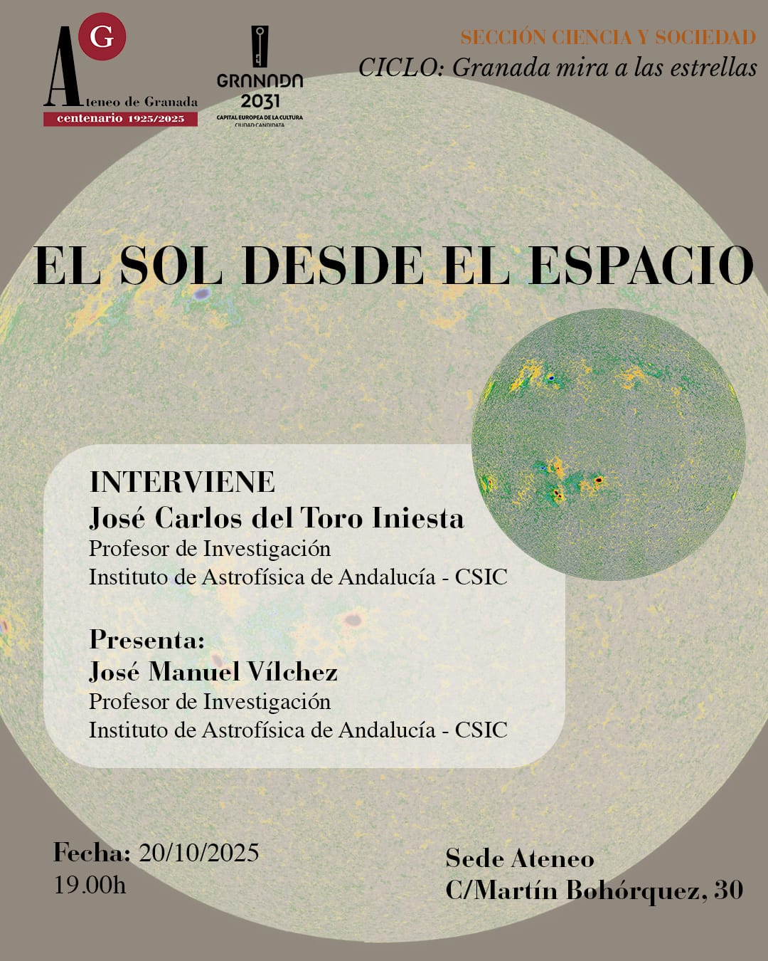 Dentro del ciclo “Granada mira a las estrellas”, el próximo lunes 20 de octubre a las 19:00 horas, el Ateneo de Granada acoge la conferencia dedicada al estudio de nuestra estrella más cercana: el Sol.