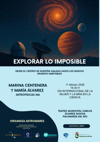 Con motivo del 11 F, Día Internacional de la mujer y la niña en la Ciencia, la Asociación Astromares organiza un recorrido desde el centro de nuestra galaxia hasta los nuevos mundos habitables. La actividad está a cargo de Marina Centenera y María Álvarez, del Instituto de Astrofísica de Andalucía (IAA-CSIC). ¿ Te vienes a Explorar lo Imposible?